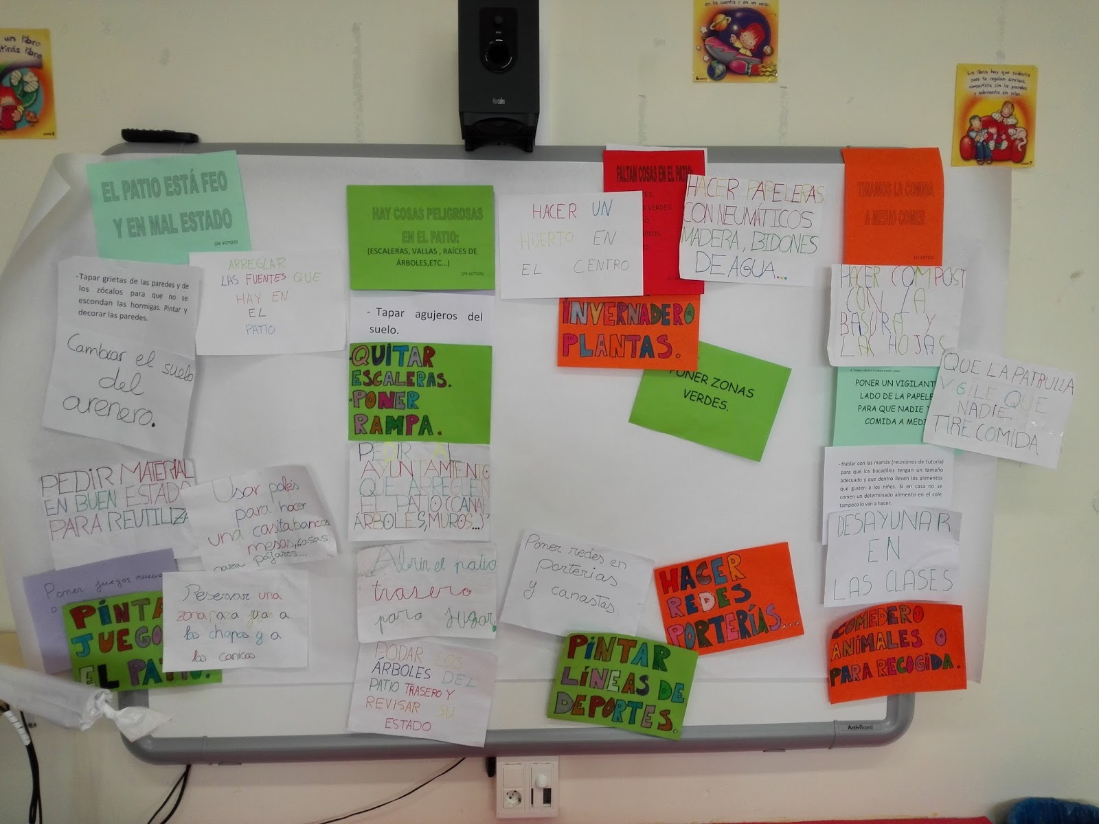 También han tenido que dejar algunas soluciones fuera, como los comederos para gatos y pájaros con las sobras de los bocadillo, ya que en el debate se ha visto que podría generar más problemas que chocan con otras tareas de mejora del patio: mantener el arenero.